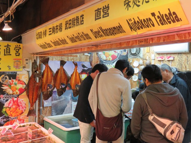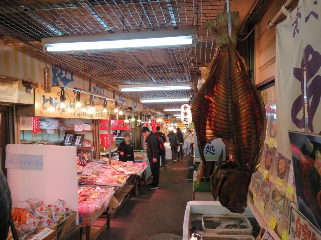 The local train to the port city runs several times an hour and the journey takes about 40 minutes. Otaru flourished from the Meiji to the Trisha Era and was known as “the entrance of the North”. It is a fun place to walk around and our first encounter was with the fish market, situated next to the station.